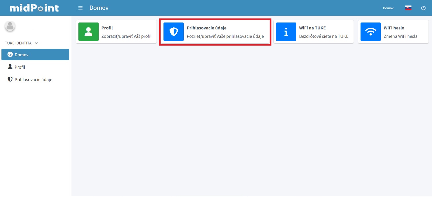 Pre zmenu prihlasovacích údajov zvoľte možnosť Prihlasovacie údaje.